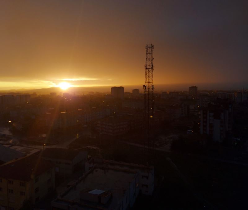 Kayseri’de güneşin batmasıyla beraber ortaya çıkan kızıl renk, güzel görüntüler ortaya çıkardı.
