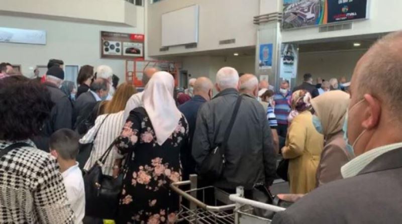 Kayseri Erkilet Havaalanında, uçaktan inen yolcuların bavullarının geç gelmesi sosyal mesafenin en aza inmesine neden oldu.