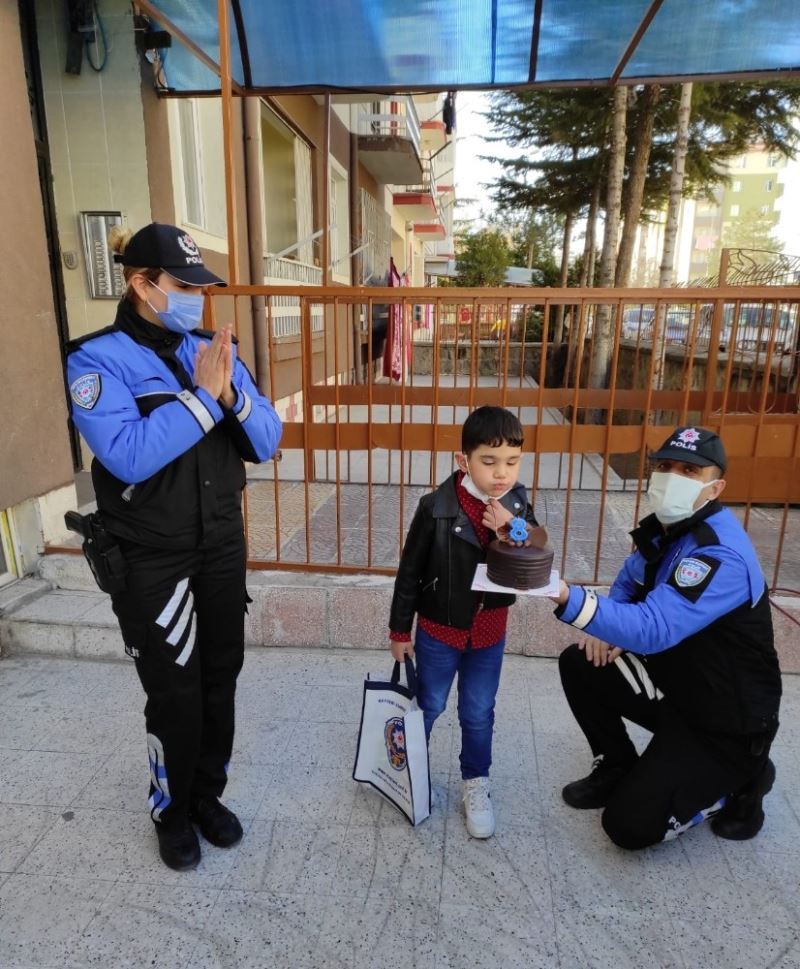 Kayseri’nin Kocasinan ilçesine bağlı Ziya Gökalp Mahallesi’nde oturan ve polisleri çok seven 8 yaşındaki Abdullah’ın ailesi, çocuklarının doğum günü olduğunu Kayseri İl Emniyet Müdürlüğü’ne bildirdi. Ardından harekete geçen Kayseri İl Emniyet Müdürlüğü Toplum Destekli Polislik Şube Müdürlüğü ekipleri, pasta alarak Abdullah’ı ziyaret etti. Burada Abdullah’ın doğum gününü kutlayan polis ekipleri, hediyeler verdi.