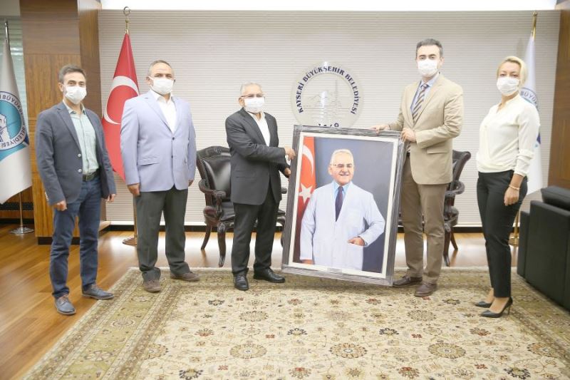 Kayseri Tabipler Odası Başkanı Mehmet İlhan Şahin ve beraberindeki heyetin Başkan Büyükkılıç’a hediye ettikleri hekim önlüğüyle olan yağlı boya tablosunun altında şu ifadeler yer aldı: “Kayseri’nin ilk Hekim Belediye Başkanı Dr. Memduh Büyükkılıç’a Kayseri Tabipler Odası’nın Armağanıdır." (İHA)