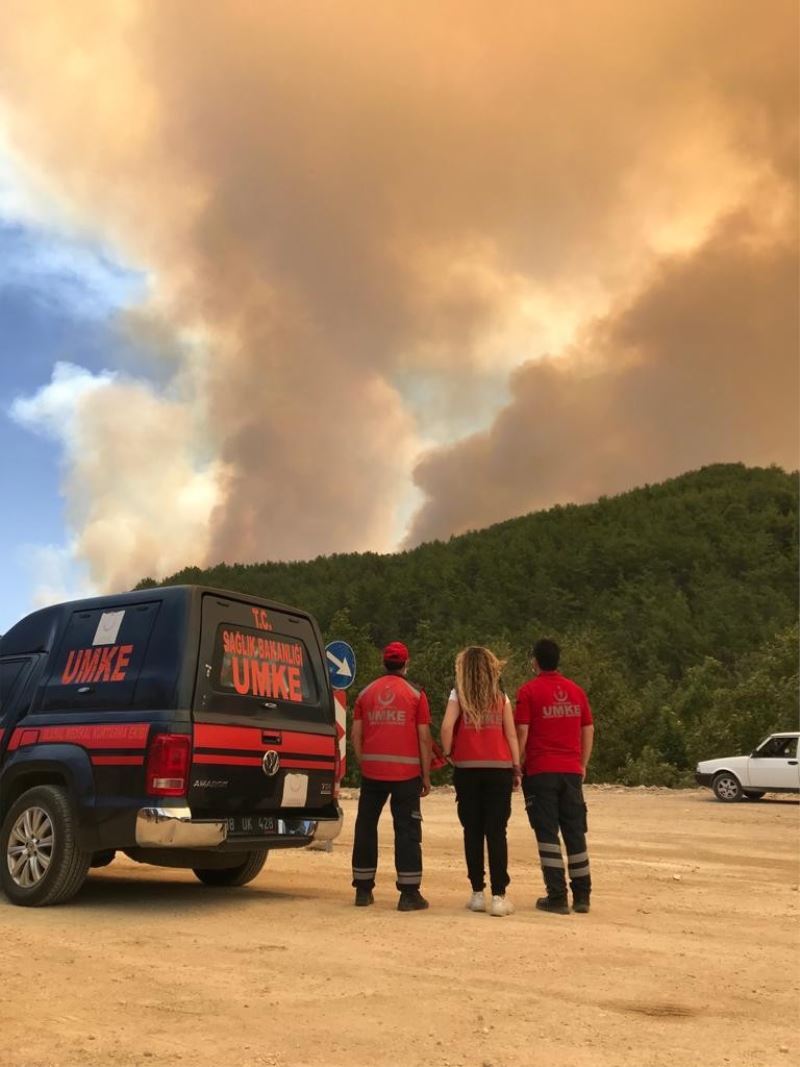 Kayseri’den 8 UMKE gönüllüsü, Sağlık Bakanlığı SAKOM birimi tarafından Antalya’nın Manavgat ilçesindeki orman yangınında görevlendirildi. Yahyalı ilçesine bağlı Kapuzbaşı ve Ulupınar Mahallelerinin içinde bulunan Aladağlar’da 3 gün boyunca etkili olan orman yangınında büyük mücadele örneği sergileyen UMKE ekipleri, Manavgat’taki yangında dumandan etkilenen ekiplere ve vatandaşlara medikal müdahale ve destek için büyük çaba sarf ediyor. UMKE 11. Bölgeden 8 gönüllü ve 2 UMKE aracı, Nevşehir’den 4 gönüllü ve 1 UMKE Aracı, Niğde’den 4 gönüllü ve UMKE aracı olmak üzere toplamda 16 UMKE gönüllüsü ile 4 UMKE aracı yangının devam ettiği ilçede görevlendirildi.