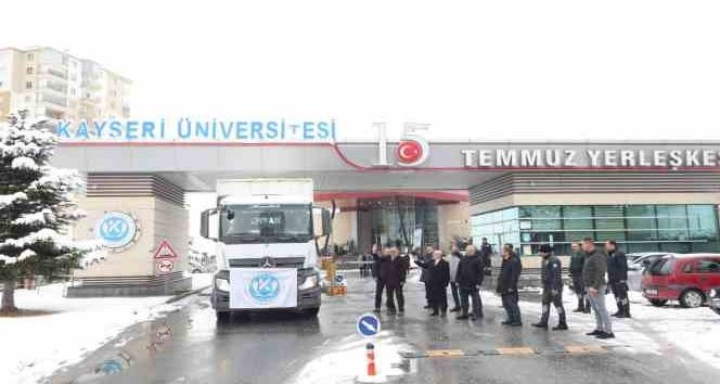Depremden hemen sonra ana kampüsü olan 15 Temmuz Yerleşkesindeki Kongre ve Kültür Merkezi’ni artçı sarsıntılardan dolayı evine giremeyen vatandaşların barınması için 24 saat hizmetlerine açan Kayseri Üniversitesi, başlattığı yardım seferberliği ile toplanan battaniye, katalitik soba, tüp, çocuk bezi, çocuk maması, giysi, ayakkabı, çorap, hasta bezi, su, süt, bisküvi, ton balığı, kuru gıda, ıslak mendil, mazot vb. çok miktardaki ihtiyaç malzemesini ise Kayseri Kızılay Şubesi aracılığı ile deprem bölgesindeki illere gönderdi.