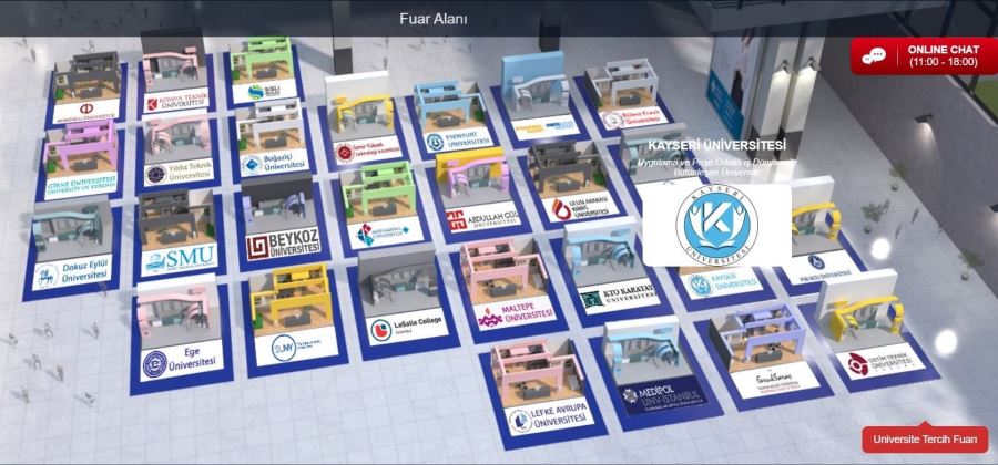 30-31 Mayıs 2020 tarihleri arasında düzenlenen online üniversite tercih fuarında Kayseri Üniversitesi ile birlikte, devlet ve özel olmak üzere 29 üniversite sanal stant açarken, katılımcı üniversiteler stantları ziyaret eden öğrencilere üniversitelerini ve bölümlerini tanıttı.