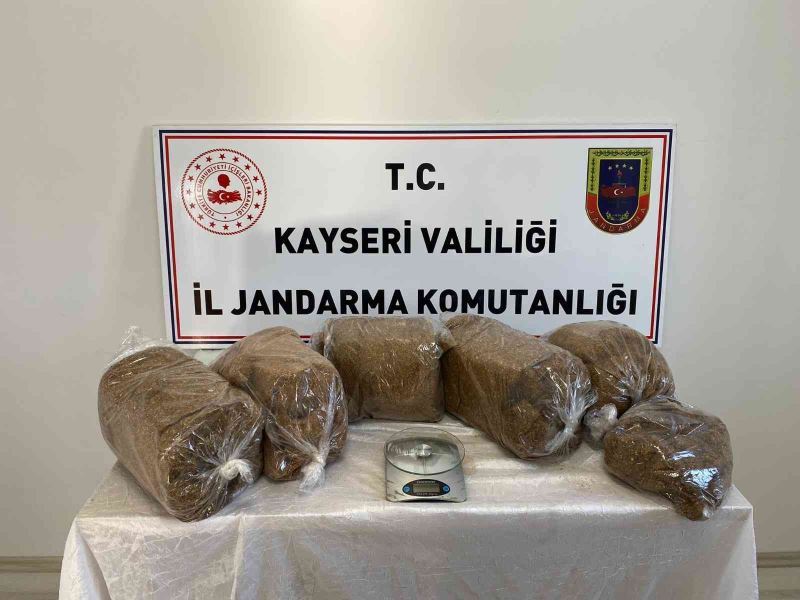 Kayseri İl Jandarma Komutanlığı ekiplerince Sarıoğlan ilçesinde yapılan çalışmalarda 16 kilo 600 gram kaçak tütün ele geçirildi.