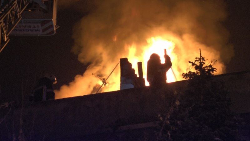Kayseri’nin Kocasinan ilçesinde bir apartmanın çatısı alev alev yandı.