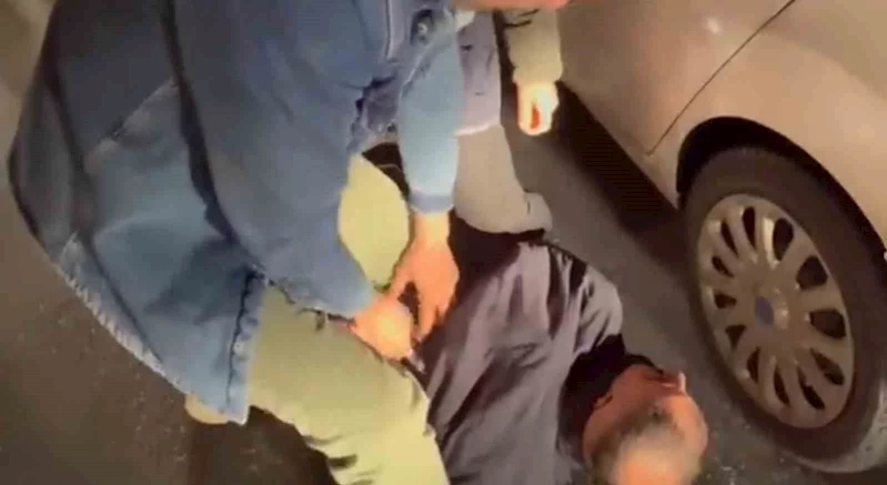Şüpheli şahıs emniyete götürülürken, operasyon anı polis kamerasına yansıdı.