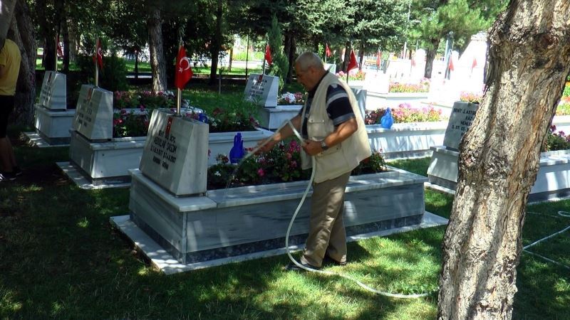 Kayseri’de Kurban Bayramı arifesinde şehit aileleri ve vatandaşlar Kartal Şehitliği’ni ziyaret etti. Ziyaretlerinde şehitlerin mezarlarını sulayan vatandaşlar daha sonra mezar başlarında Kuran-ı Kerim okudu.