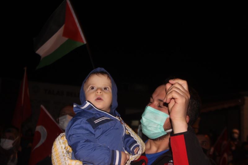 Gün boyu İsrail polisinin Mescid-i Aksa’ya saldırmasına tepki göstermek için Kayserililer iftardan sonra araçlarıyla konvoy yaptı. Türk ve Filistin bayraklarıyla konvoy halinde Talas Paraşüt İndirme Alanı’na gelen binlerce vatandaş, Filistin’e destek sloganları attı. Topluluğa seslenen İl Müftüsü Şahin Güven; "Hepinizin bildiği üzere bugün öğle ezanı akabinde duamızı 81 ilin 130 bin camisinden semalara gönderdik. Hepimiz ’amin’ dedik. Unutmayın; Mescid-i Aksa için buradayız. Bizler Müslümanlar olarak camilerle ihya oluruz. İsrailli zalimlerin Mescid-i Aksa’ya yönelik yaptıkları şeyler bizim tarihimize, Müslümanlığımıza yapılmış olan bir saldırıdır. Orada; gece-gündüz nöbet tutan Filistinli kardeşlerimiz ise hepimiz adına dünyadaki 1 milyar 800 milyon Müslüman adına orada nöbet tutuyorlar. Onun için bizler de onların nöbetine destek vermek için buradayız. Her şehirde bu kadar insan toplanıyor, bunun ne anlamı var? Birincisi bu bilinç ve duyarlılığa sahip olmak önemli. O yüzden hepinize teşekkür ediyorum. Çocuklarımıza Mescid-i Aksa’yı, Filistin’i böyle programlarla anlatacağız. İkinci olarak her şehirde bu şekilde bilinçli insanların Filistin ve Mescid-i Aksa davası için bir araya gelmiş olması, işgal edilmiş olan topraklarımızdaki zalimleri korkutuyor. Ama ondan daha çok onların ülkemizdeki işbirlikçilerini korkutuyor. Müslümanlar için dünyanın neresinde olursa olsun zulme karşı, zalime karşı mazlumla birlikte olmak gibi güzel bir hasretimiz var, onun için buradayız" ifadelerini kullandı.