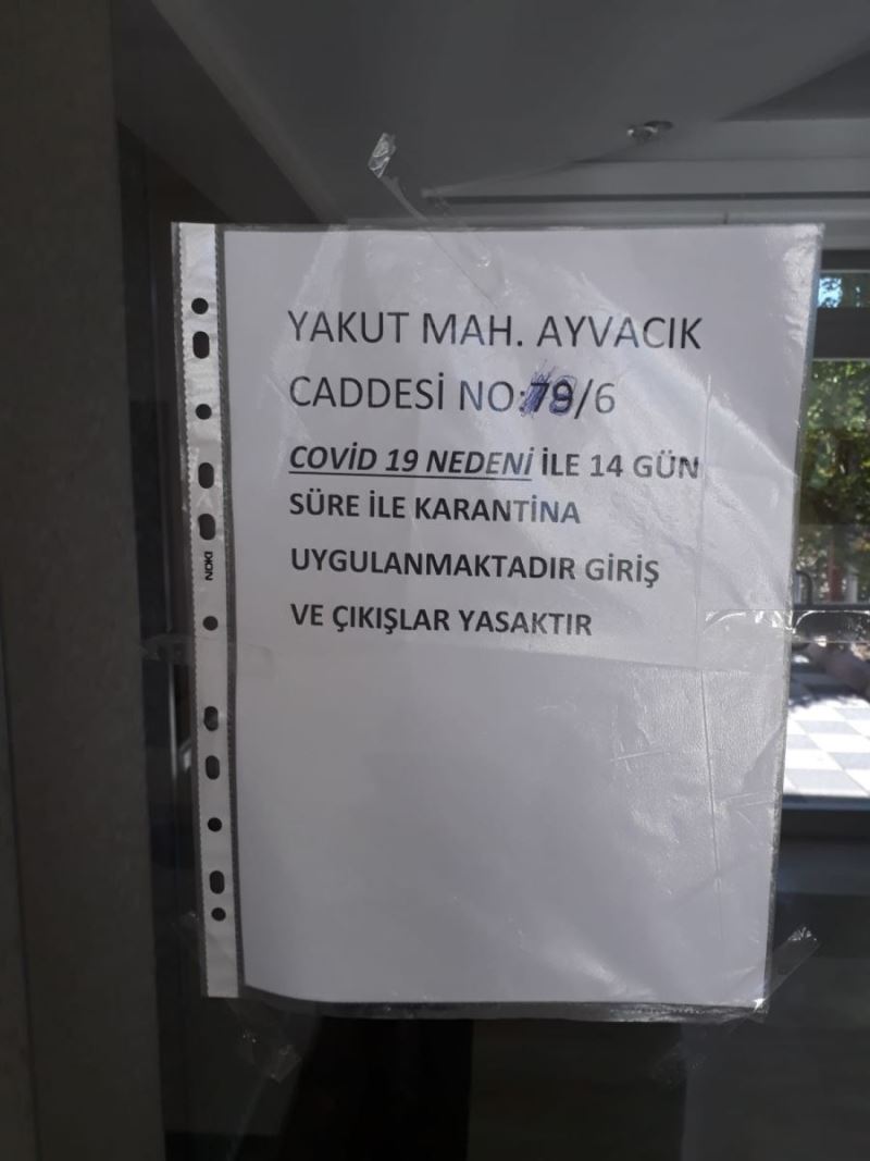 Bina girişine de dairenin karantina altına alındığı uyarısı asıldı. 6 kişilik ailenin ihtiyaçları Vefa Destek Grubu tarafından karşılanacak.(İHA) -