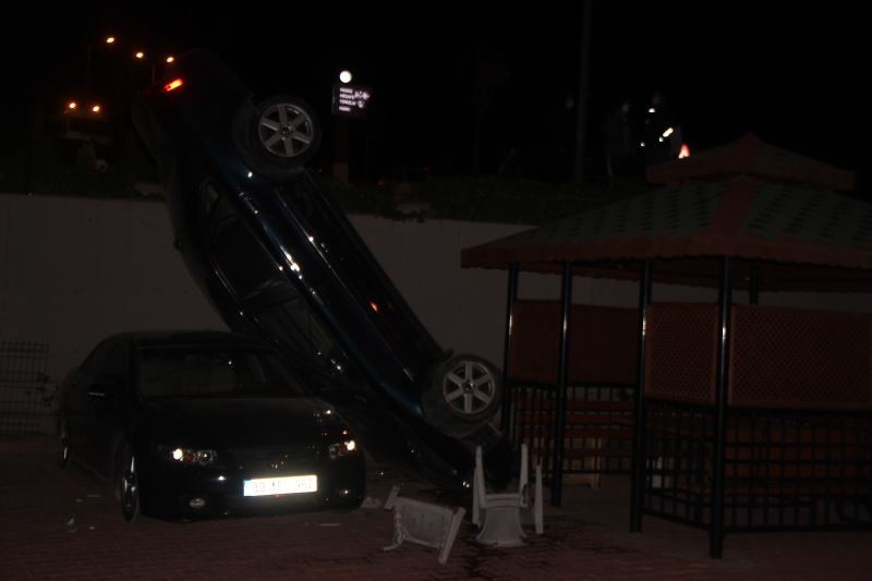 Kayseri’de bir garip kaza: Otoparka düşen otomobil dik durdu