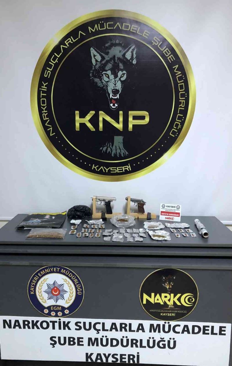 Kayseri İl Emniyet Müdürlüğü Narkotik Suçlarla Mücadele Şube Müdürlüğü ekipleri tarafından son 24 saatte yapılan çalışmalarda uyuşturucu ticareti yaptığı belirlenen 6 şüpheli gözaltına alınırken çok sayıda uyuşturucu madde ele geçirildi.
