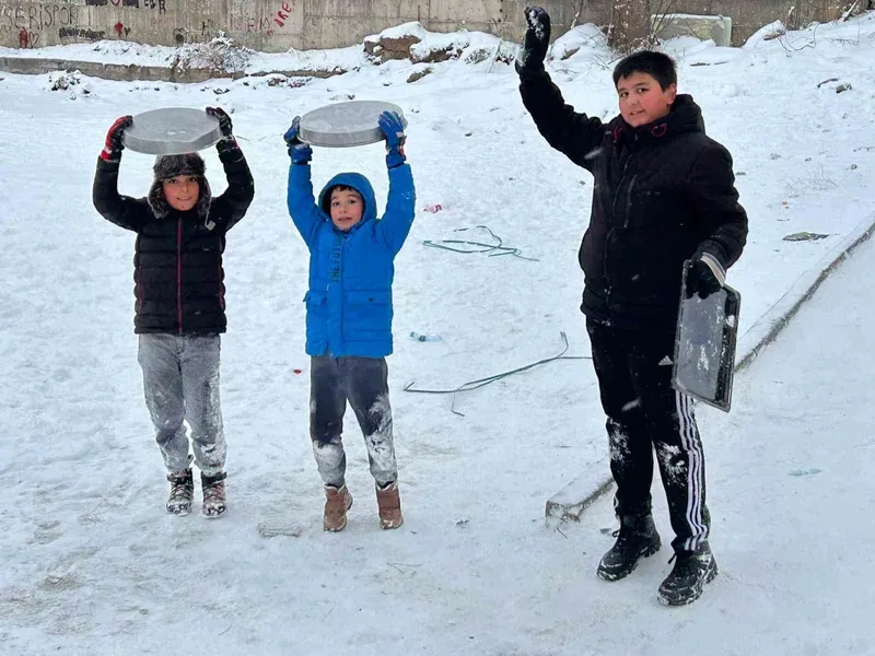 Kayseri’de yoğun kar yağışı hayatı olumsuz etkilerken, sokaklar çocuklar için oyun parkı oldu. Kar yağışıyla birlikte parklardaki oyun alanlarını tercih etmeyen çocuklar, kar topu oynayarak ve karda kayarak, karın tadını çıkarttı. Yolların kar ile dolması sonrası kızaklar ve pasta tepsisi alan çocuklar, saatlerce keyifle oynadı.