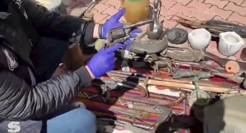 Kayseri İl Emniyet Müdürlüğü Kaçakçılık ve Organize Suçlarla Mücadele Şube Müdürlüğü ekipleri, şüpheli bir kişinin evinde çok sayıda tarihi eser bulundurduğu ihbarı üzerine harekete geçti. Şahsın evini tespit eden ekipler, operasyon düzenledi. Şüpheli şahıs gözaltına alınırken, yapılan aramada tarihi eser niteliği taşıyan 6 adet toplu tabanca, 4 adet tüfek, 202 adet kılıç, kama, sütun, sikke ve bilezik ele geçirildi.