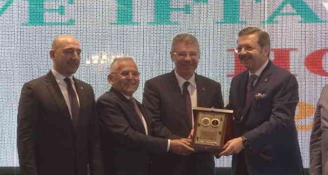 Kayseri Ticaret Borsası’nın önemli projelere imza attığını belirten TOBB Başkanı Rifat Hisarcıklıoğlu da, “Kayseri Ticaret Borsamız tarım sektörünü geliştirmek ve hizmet kapasitesini artırmak üzere pek çok önemli projeye imza atıyor. Kayserimize de kalıcı eserler bırakıyorlar. Kayserimize değer katacak her iş ve her yatırımın peşinde oluyor hayata geçmesini sağlıyor. İç Anadolu’nun en modern canlı hayvan borsasını ve pazar yerini kuruyor. Kalkınma ajansından temin ettiği destekle et ürünlerine yönelik AR-GE istasyonu projesini hazırlıyor. Faaliyete başlattığı Gıda ve Toprak Laboratuvarıyla çok hayırlı bir işe daha imza atıyorlar. Burasıyla birlikte inşallah taşir kısmında benzeri sıkıntıları üreticilerimizi kurtaracak. Böylece üretilen sucuğumuz, pastırmamız markayken güvenilir şekilde tüketilmesini ve fiyatını artıracak. Ayrıca hayata geçirdiği e-ticaret sitesiyle yerel firmalarımıza ve kendi ürünlerine destek olmaktadır. Topraksız tarım projesiyle inovatif işlere imza atılmaktadır. Sizlere daha iyi hizmet vermek üzere ülkemizin en kapsamlı ticaret borsası kampüsünde kur payı hedeflemektedir. Akredite bir borsa olarak üyelerine 5 yıldızlı hizmet sunmaktadır. Bunların hepsi de bir vizyon işidir. Üyelerimize verdikleri hizmeti devamlı geliştiren daha kaliteli hale getiren bu çalışma vizyonundan dolayı Kayseri Ticaret Borsamızı, Başkan Recep Bağlamış’ı ve bütün ekibini tebrik ediyorum. İnşallah onların bu gayretiyle ve emekleriyle hem üreticimizin hem de tüccar ve sanayicimiz daha bereketli kazançlar elde etmelerini temenni ediyorum. Oda ve borsa başkanları Kayseri’nin bereketini Ankara’ya taşımaktadırlar. Buradaki tüm başkanlarımız TOBB’de benim mesai arkadaşlarım. Hepsiyle birlikte çalışıyoruz. TOBB yönetiminde kurullarda konseylerde hepsinde emekleri var. Yine burada çok güzel bir tablo görüyorum” dedi.