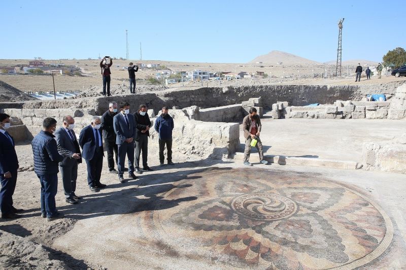 Kayseri Valisi Şehmus Günaydın ise, bulunan mozaiklerin çok özellikli olduğunu ve çok fazla tahrip olmadıklarını gördüklerini ifade ederek, “Bu konuda Büyükşehir Belediyemizin yapmış oldukları katkılar için kendilerine teşekkür ediyoruz. Bu katkıları ve destekleri biraz daha arttırarak bu kazıyı hızlandırmak istiyoruz. Çünkü Kayseri’miz turizm anlamında çok önemli gelişmeler gösteriyor. Birçok ülkeden gerek kış turizmi gerek yaz turizmi için Kayseri’mize büyük bir ilgi ve alakanın olduğunu büyük bir memnuniyetle görüyoruz. Otellerimizdeki doluluk oranlarına baktığımız zaman pandemiye rağmen çok önemli doluluk oranlarına ulaştığımızı görüyor bundan da büyük bir mutluluk duyuyoruz. İnşallah kış sezonunda ve akabinde ve yaz sezonunda ortaya konulan, öngörülen projelerin tamamlanmasıyla turizm anlamında Kayseri’miz ülkemizin önemli bir merkezi haline gelecek. Zaten Erciyes’imiz ve yapımı devam eden Yüksek İrtifa Kampımızla birçok ülkenin dikkatini çekmiş durumdayız” diye konuştu.