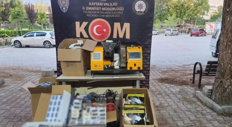 Kayseri İl Emniyet Müdürlüğü Kaçakçılık ve Organize Suçlarla Mücadele Şube Müdürlüğü ekipleri, Bünyan ilçesinde bir şahsın ikametine operasyon düzenledi. Operasyonda şüpheli T.A. (45) isimli şahıs gözaltına alınırken, evde arama yapıldı. Yapılan aramada 4 adet ruhsatsız tüfek ve 18 adet fişeği, 1 adet sigara dolum makinesi, 26 bin dal makaron ve 28 kilo kaçak tütün ele geçirildi.