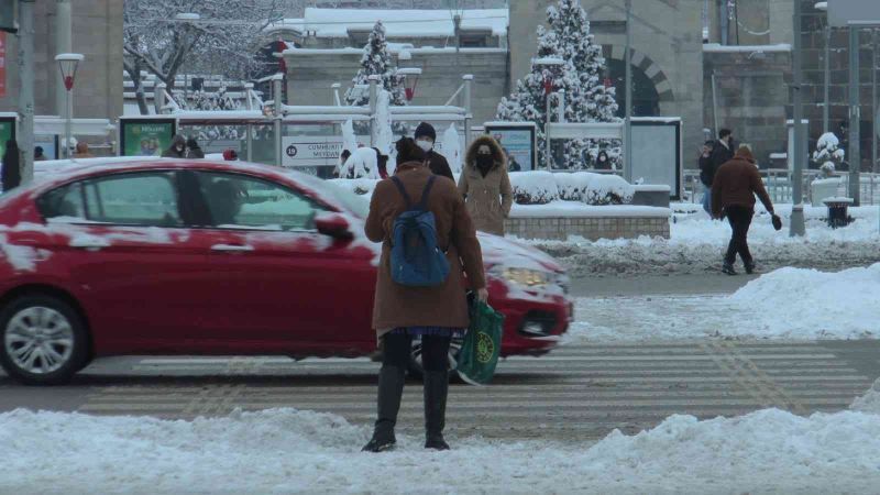 Kayseri’de akşam saatlerinde başlayan kar yağışı, kenti beyaz örtü ile kapladı.