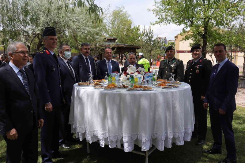 Kayseri Valiliği tarafından düzenlenen tören, Kayseri İl Emniyet Müdürlüğü ziyareti ile devam etti. Vali Yardımcısı Abdullah Kalkan, 12. Hava Ulaştırma Ana Üs Komutanı Tuğgeneral Vedat Öncel, Melikgazi Kaymakamı Bülent Karacan, Talas Kaymakamı Yaşar Dönmez, Talas Belediye Başkanı Mustafa Yalçın, İl Emniyet Müdürlüğü’nü ziyaret etti. Burada İl Emniyet Müdürü Kamil Karabörk ile görüşen heyet, emniyet müdür yardımcıları ve polis memurları ile bayramlaşarak sohbet etti.