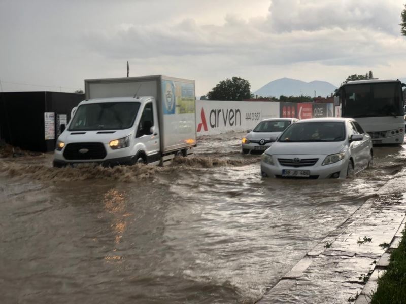 Kayseri’de sağanak yağışın etkili olmasının ardından caddelerde su baskınları meydana gelirken, bazı araçlar da yolda kaldı.