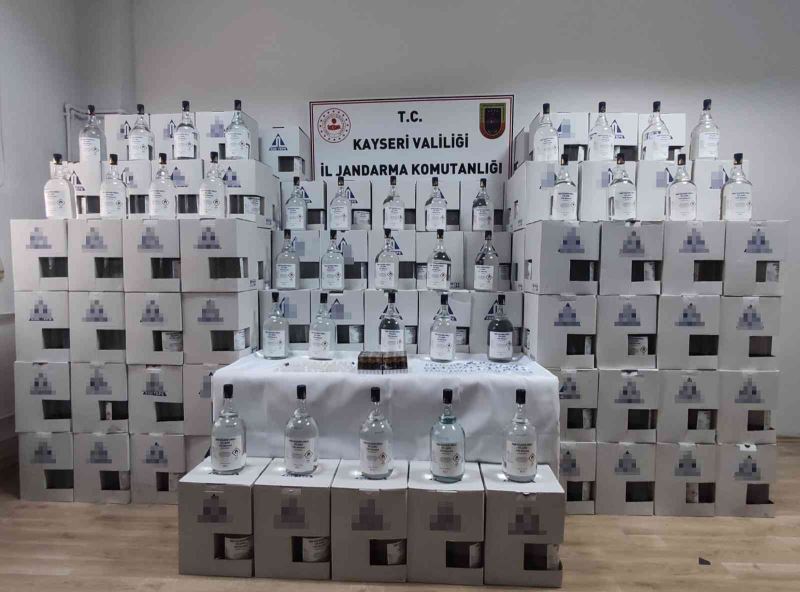 Kayseri’de jandarma ekipleri tarafından düzenlenen sahte içki operasyonunda 2 ton 68 kilo etil alkol ele geçirildi.