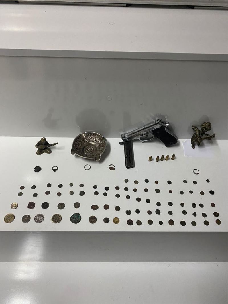 Edinilen bilgiye göre, Kayseri İl Emniyet Müdürlüğü Kaçakçılık ve Organize Suçlarla Mücadele Şube Müdürlüğü ekipleri tarafından bir eve operasyon düzenlendi. Operasyon kapsamında yapılan aramada, Roma ve Bizans dönemine ait 78 adet Sikke, 4 adet yüzük, 2 adet heykel, 1 adet işlemeli kase, 1 adet siyah renkli taş, 1 adet tabanca ve tabancaya ait 1 adet şarjör ile 5 adet fişek ele geçirildi.