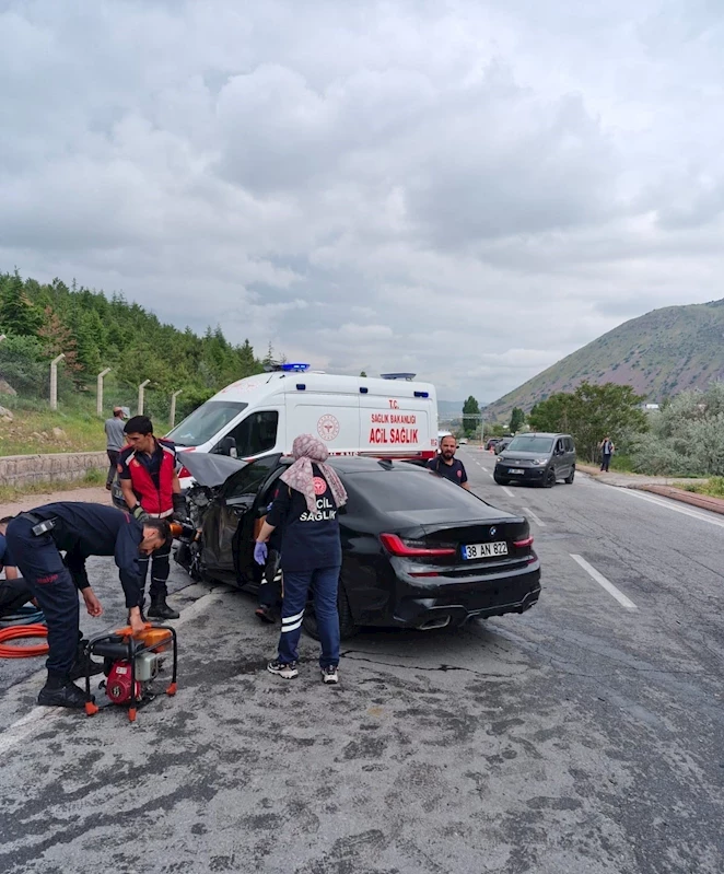 Edinilen bilgiye göre, ilçeye bağlı Sazyolu Caddesi’nde meydana gelen kazada 38 AN 822 plakalı otomobil ile plakası belirlenemeyen bir otomobil kaza yaptı. Çarpmanın etkisi ile araçlardan birisi yol kenarına savrulurken, haber verilmesi üzerine olay yerine sağlık, polis ve itfaiye ekipleri sevk edildi. Meydana gelen kazada M.A. hayatını kaybederken, 2 kişi de ağır yaralandı.