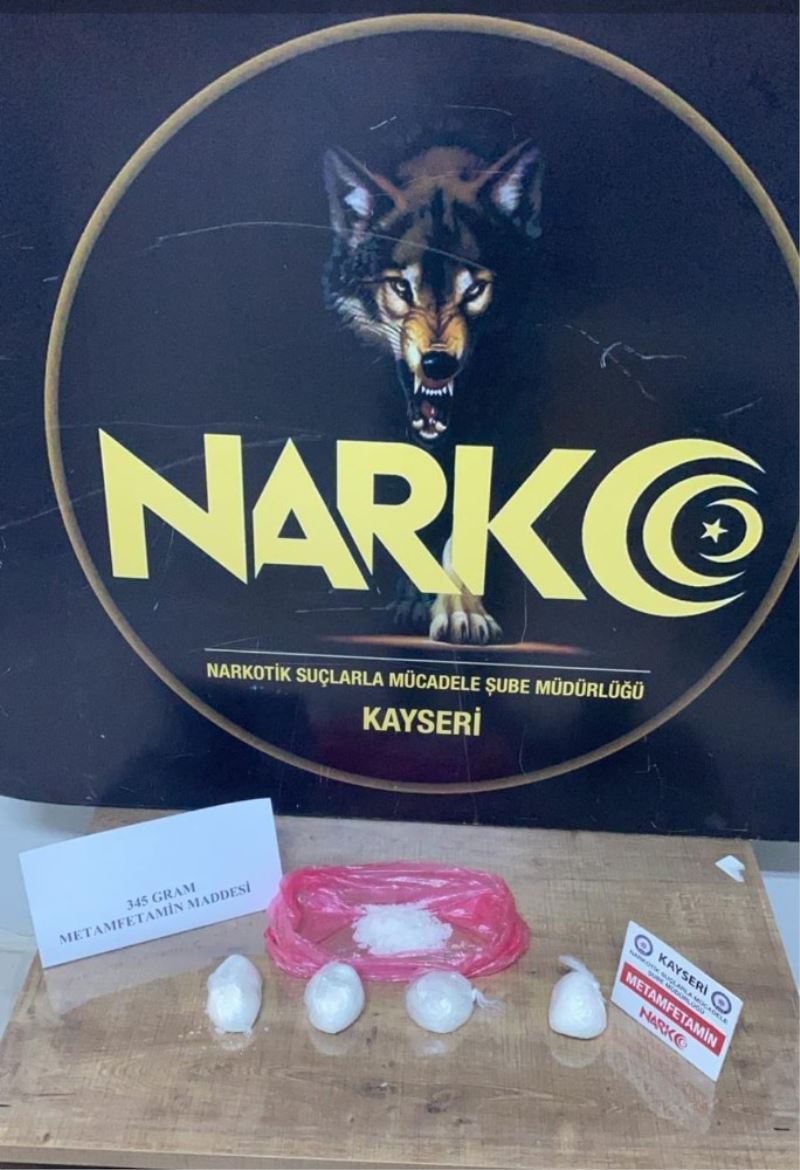 Yapılan aramada ise 345 gram metamfetamin maddesi ele geçirildi.