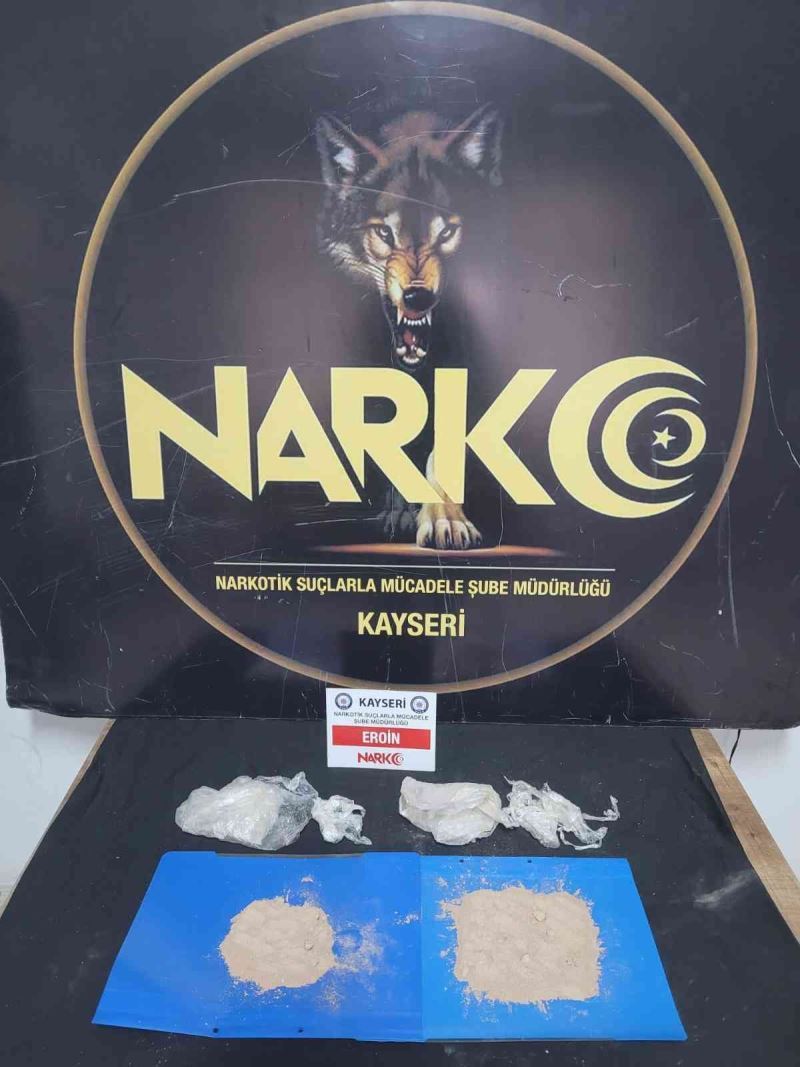 Kayseri İl Emniyet Müdürlüğü Narkotik Suçlarla Mücadele Şube Müdürlüğü ekiplerince yapılan çalışmalarda çeşitli miktarlarda uyuşturucu madde ele geçirilirken olaylarla ilgili 2 kişi gözaltına alındı.