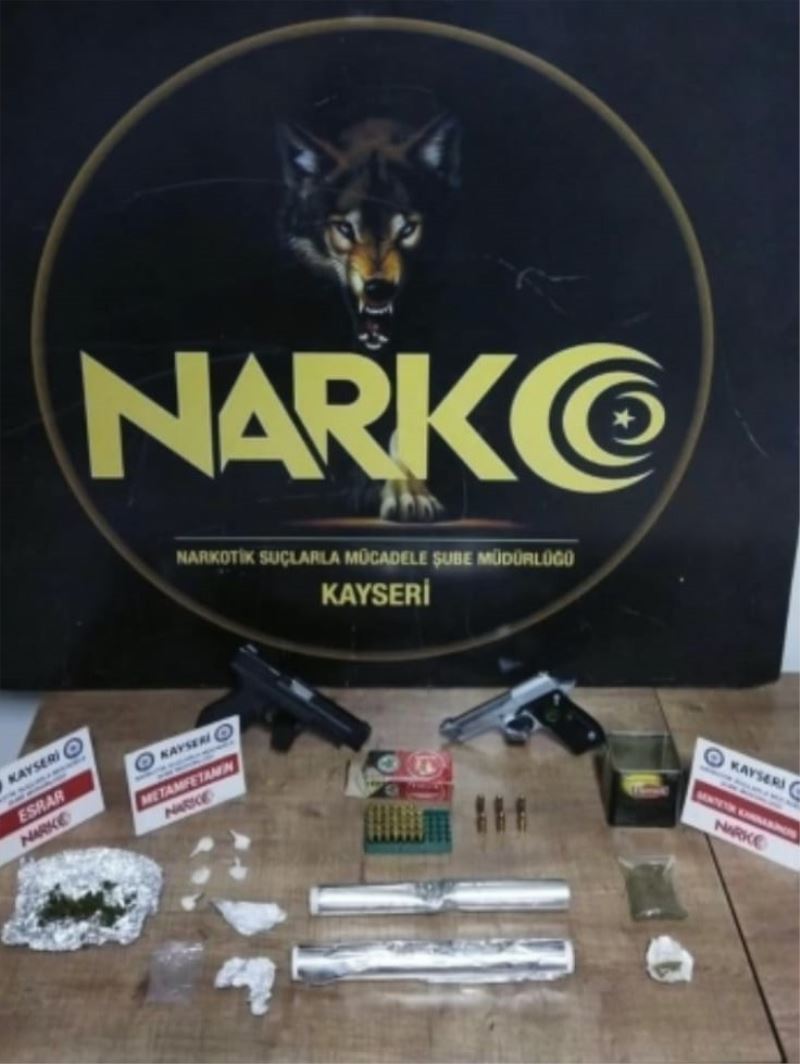 Edinilen bilgiye göre, Kayseri İl Emniyet Müdürlüğü Narkotik Şube Müdürlüğü ekiplerince Kocasinan ilçesinde iki farklı yapılan operasyonda satışa hazır 600 gram metamfetamin maddesi, 12 gram bonzai maddesi, 6 gram esrar maddesi, 1 adet hassas terazi, 3 adet uyuşturucu paketlemek için rulo folyo, 3 adet tabanca ve 18 bin TL suçtan elde edilen gelir ele geçirildi. Olayla ilgili 6 kişiye uyuşturucu madde kullanmak suçundan işlem yapılırken, kişi 3 ise ’uyuşturucu madde ticareti yapmak’ suçundan gözaltına alındı.
