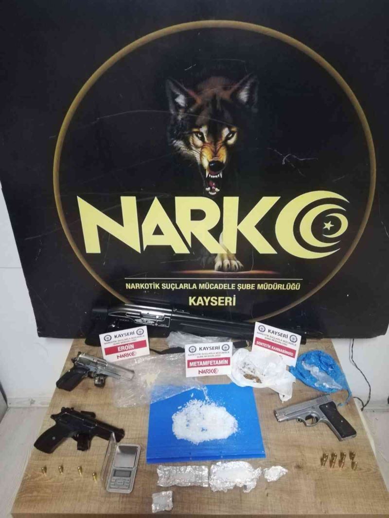 Kayseri İl Emniyet Müdürlüğü Narkotik Suçlarla Mücadele Şube Müdürlüğü ekipleri tarafından yapılan çalışmalarda çeşitli miktarlarda uyuşturucu madde ele geçirilirken olayla ilgili 3 kişi gözaltına alındı.