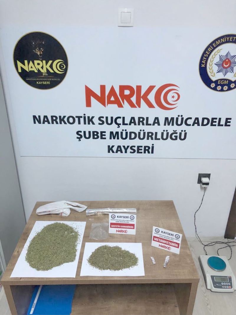 Kayseri İl Emniyet Müdürlüğü Narkotik Suçlarla Mücadele Şube Müdürlüğü ve İncesu İlçe Emniyet Müdürlüğü ekipleri tarafından ilçeye bağlı Yarım Mahallesinde operasyon düzenledi. Operasyonda H.H.Ç., K.S. ve H.G. gözaltına alınırken, 2 parça halinde 87.5 gr bonzai maddesi, 2 fişek metamfetamin maddesi ve 1 adet alüminyum folyo ele geçirildi.