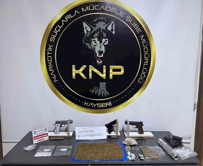 Kayseri’de polis ekipleri tarafından yapılan çalışmalarda; çeşitli miktarda uyuşturucu madde, 3 adet tabanca ve uyuşturucu ticaretinde kullanılan malzeme ele geçirilirken, 8 şahıs gözaltına alındı.
