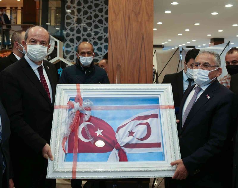 Kayseri Büyükşehir Belediye Başkanı Dr. Memduh Büyükkılıç, Kuzey Kıbrıs Türk Cumhuriyeti Cumhurbaşkanı Ersin Tatar’a, iki ülkenin birlik ve beraberliğine atıfta bulunarak el sanatı ile hazırlanan, Türk bayrağı ve KKTC bayrağından oluşan hediye takdim etti.