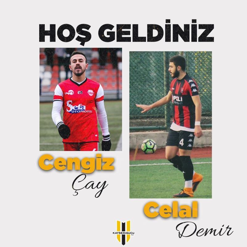 Süper Amatör Küme için geri sayım devam ederken Makineleri Kayserigücü de transfer çalışmalarını aralıksız bir şekilde sürdürüyor. Sarı siyahlı ekip, son olarak iki yeni oyuncuyu kadrosuna kattı. İlk olarak iç transferde Abdullah Gürbüz ile yeniden anlaşma sağlayan Kayserigücü, dış transferde de boş durmuyor. Antrenör Rasim Aykurt’un istediği oyuncuları bir bir kadrosuna katan sarı siyahlı ekip, Cengiz Çay ve Celal Demir’i renklerine bağladı. Kulüp sosyal medyasından yapılan açıklamada; “Kulübümüz yeni sezonda Cengiz Çay ve Celal Demir ile anlaşmaya varmıştır. Oyuncularımıza ve kulübümüze hayırlı olsun” denildi.