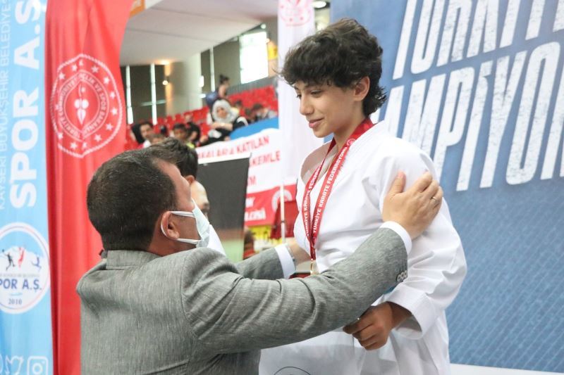 Kayseri Büyükşehir Belediyesi Spor A.Ş. ve Gençlik Spor İl Müdürlüğü ev sahipliğinde düzenlenen Karate Yıldızlar ve Yurt Lig Türkiye Şampiyonası devam ediyor. Erkekler kata dalında rakiplerini geçerek şampiyon olan Muhammet Mehdi Yüreğiçatal’a madalyasını Kayseri Gençlik ve Spor İl Müdürü Ali İhsan Kabakcı takdim etti.