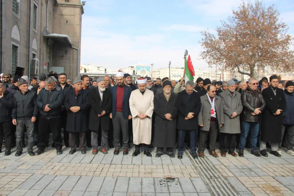 Kayseri Gönüllü Kültür Kuruluşları ile Filistinli Dayanışma Platformu tarafından düzenlenen programda, İsrail ve Amerika Birleşik Devletleri protesto edildi. Cumhuriyet Meydanı’nda bulunan Bürüngüz Camii’nde toplanan vatandaşlar; İsrail’in Filistin’e düzenlediği saldırıda hayatını kaybedenler için gıyabi cenaze namazı kıldı. Namaz İl Müftüsü Dursun Ayvaz tarafından kıldırıldı. Grup adına açıklama yapan Mehmet Emin Aslantürk, Trump’ın Gazze söylemlerinin asla kabul edilemez olduğunu aktararak, "Gazze Müslümanların öz yurdudur. Gazze ve Filistin’de 7 Ekim 2022’de başlayan ve 471 gün süren Hamas’ın şanlı direnişi ve İsrail soykırımı, ateşkes anlaşması ile sona erdi. Bu süre içerisinde karadan, havadan ve denizden devam eden İsrail saldırılarında çoğunluğu çocuk ve kadın olmak üzere 60 binden fazla insan şehit oldu. 100 binden fazlası da yaralandı. Okullar, camiler, hastaneler dahil tüm yerleşim birimleri vahşi saldırıların hedefi olarak yerle bir edildi. Bu vahşi saldırılarda gazeteciler ve sağlıkçılar da hayatlarını kaybetti. Amerika Birleşik Devletleri’nin yeni seçilen başkanı Trump; tıpkı önceki başkanları gibi ülkesinin İsrail’in emrinde olduğunu ilan etti. Netanyahu ile Gazze’yi boşaltarak Müslümanları öz yurtlarından çıkarma konusunda anlaştığını duyurdu. Trump, konu ile ilgili yaptığı açıklamada 471 gün vatanlarını katil işgalcilere karşı savunan Gazze halkını Mısır ve Ürdün’e göndereceğini, Gazze’nin de Amerika Birleşik Devletleri’ne verilip tatil beldesi yapılacağını duyurdu. Bizler; 471 gün süren işgalcilere karşı verdiği şanlı mücadele için Hamas’ı tebrik ediyoruz. 2 yıla yakın devam eden İsrail saldırılarına karşı hayatını kaybedenlere rahmet, yaralılara acil şifalar diliyoruz. Bugüne kadar olduğu gibi bundan sonra da Gazze ve Filistin’e insani yardımların devam etmesi gerektiğini ve Filistin halkının asla yalnız bırakılmayacağını bildiriyoruz. Amerika Birleşik Devletleri Başkanı Trump’ın Gazze ve Filistin halkının öz yurtlarından sürme planını insanlık adına asla kabul edilemez buluyor, şiddetle reddediyor, şeytani bir plan olarak reddediyoruz" dedi.