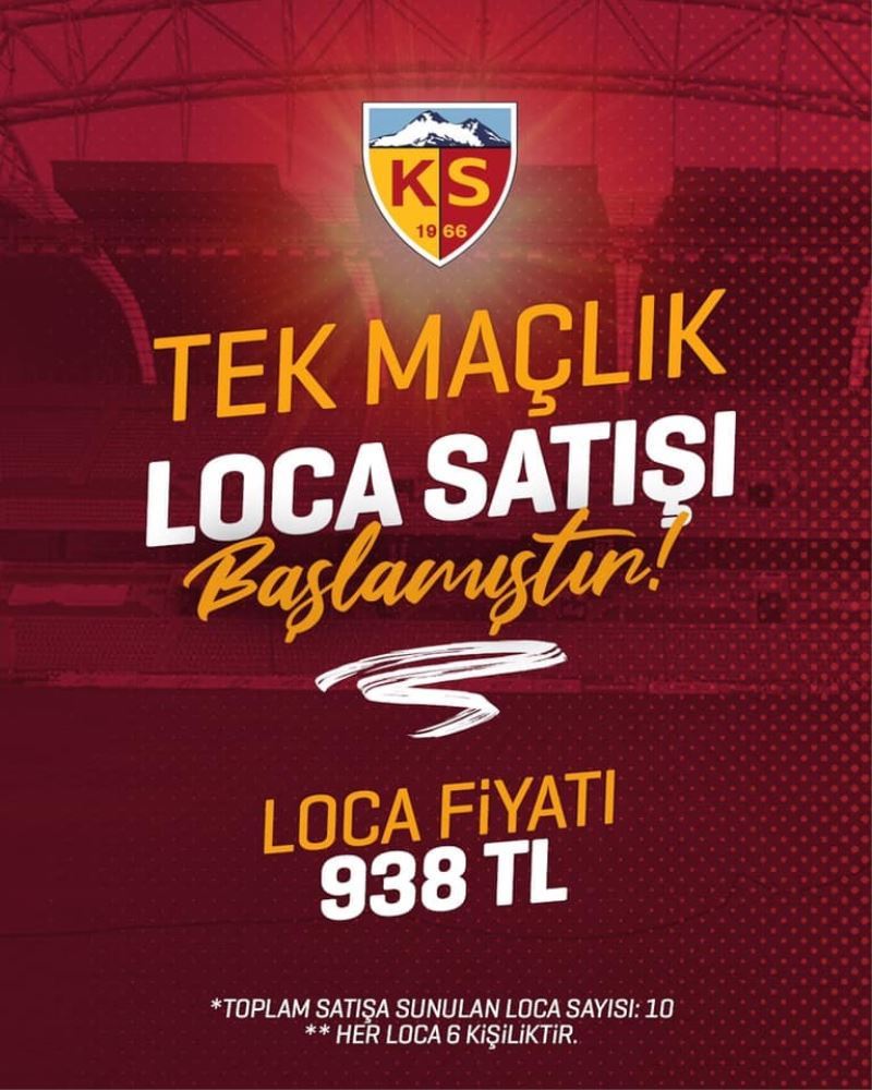 Türkiye Futbol Federasyonu’nun ’Locaların kapasitesinin yarısı kadar tribüne taraftar girebilir’ kararı sonrasında kuzey ve Güney tribünde bulunan localara taraftar alacak olan Hes Kablo Kayserispor, 10 locayı satışa çıkardı. Hes Kablo Kayserispor Kulübünden ’Tek maçlık loca satışına başlanmıştır’ şeklinde yapılan açıklamada, Kadir Has Stadı Doğu tribününde bulunan 10 adet locanın satışa çıkarıldığı duyuruldu. 6’şar kişi olan Doğu Tribün locaları 938 TL gibi bir rakama satışa çıkarıldı. Kayserispor kulübü, bu vesile ile hem taraftarın bir nebze olsun tribün hasreti dindirmiş olacak hem de kulübe gelir sağlayacak.