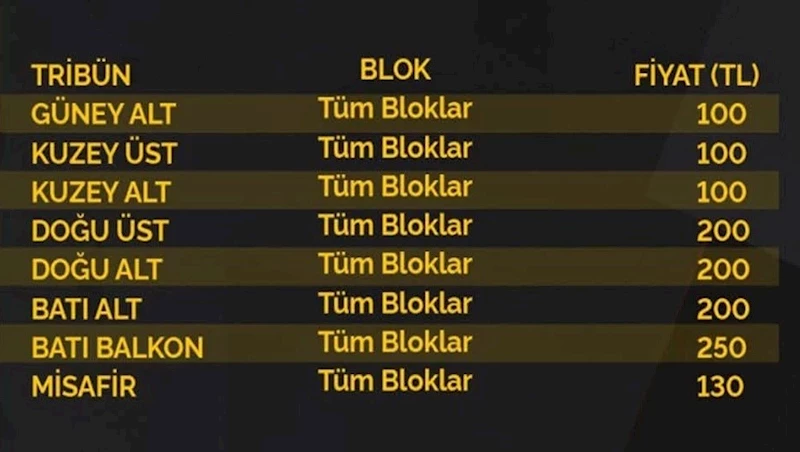 Misafir tribün bileti de 130 TL’den satışa sunuldu.