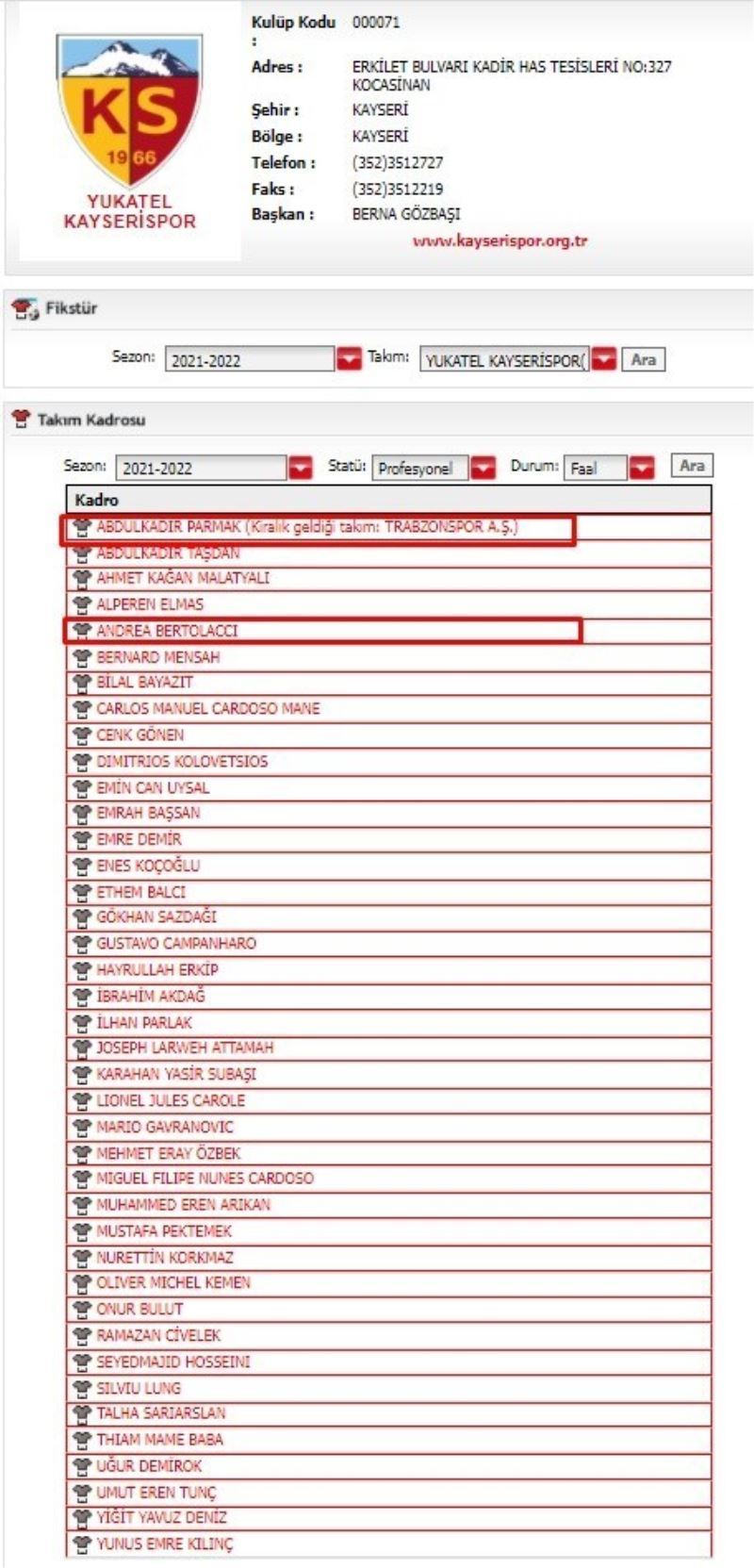 Süper Lig’de ligin 21.haftasında yarın deplasmanda Adana Demirspor’a konuk olacak Yukatel Kayserispor’da kadrosuna kattığı Abdulkadir Parmak ve Andrea Bertolacci’nin lisanlarını çıkarttı. 2 futbolcu yarın oynanacak olan Adana Demirspor maçında forma giyemeyecekler.