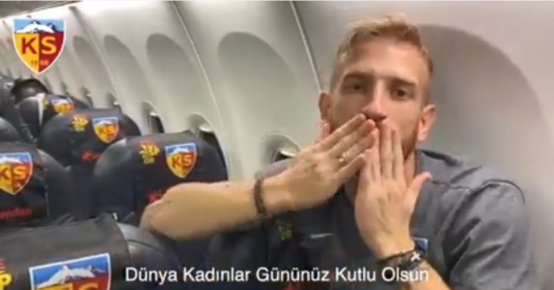 Ligde Hatayspor galibiyetiyle Kayseri’ye moralli dönen Kayserisporlu futbolcular, uçakta çekilen video ile 8 Mart Dünya Kadınlar Günü’nü kutladı. Futbolcular, başta Kayserispor Kulübü Başkanı Berna Gözbaşı olmak üzere tüm kadınların gününü verdikleri mesajla kutladı.