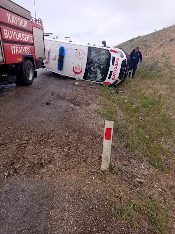 Kayseri’nin Pınarbaşı ilçesinde kaza ihbarına giden ambulansın yoldan çıkıp yan yatması sonucu meydana gelen kazada 3 sağlık çalışanı yaralandı.