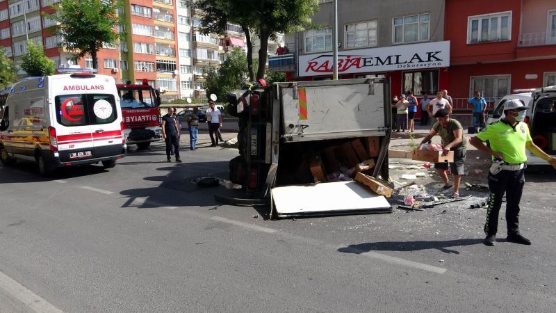 Edinilen bilgiye göre, Mustafa Kemal Paşa Caddesi’nde seyir halinde olan 06 PPZ 92 plakalı et yüklü kamyonet ile 38 AAD 133 plakalı Renault marka otomobil çarpıştı. Çarpışmanın etkisiyle kamyonet devrilirken, olay yerine polis, sağlık ve itfaiye ekipleri sevk edildi. Polis ekipleri yol üzerinde güvenlik önlemi alırken, itfaiye ekipleri ise devrilen kamyonette sıkışan yaralıyı kurtarmak için çalışma başlattı. Ekipler tarafından sıkıştığı yerden çıkarılan yaralı, ambulansla hastaneye kaldırılarak tedavi altına alındı. Kazaya karışan araçlar, incelemelerin ardından çekici yardımıyla bulundukları yerden kaldırıldı.