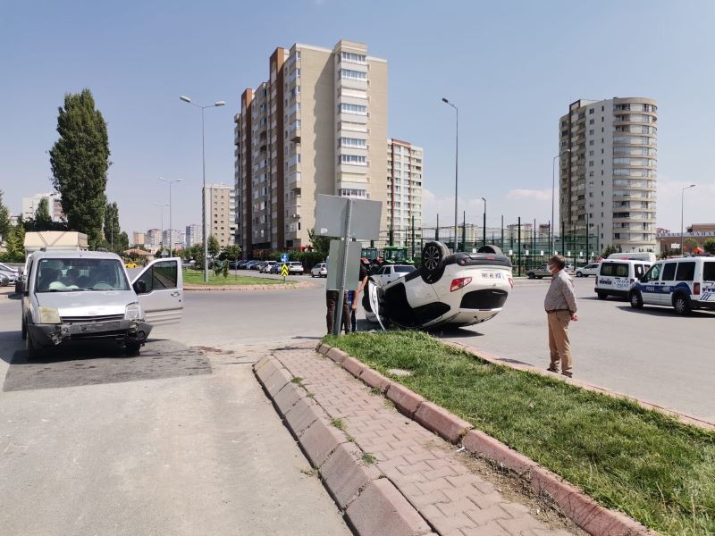 Kayseri’nin Kocasinan ilçesinde hafif ticari araç ile otomobilin çarpıştığı kazada otomobil ters döndü. Kazada 1’i ağır 3 kişi yaralandı.