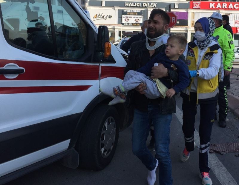 Kayseri’de iki aracın kavşakta çarpıştığı kazada 6 kişi yaralandı. Yaralılardan biri şoka girerken kucağında tuttuğu çocukla birlikte uzun süre ağladı.