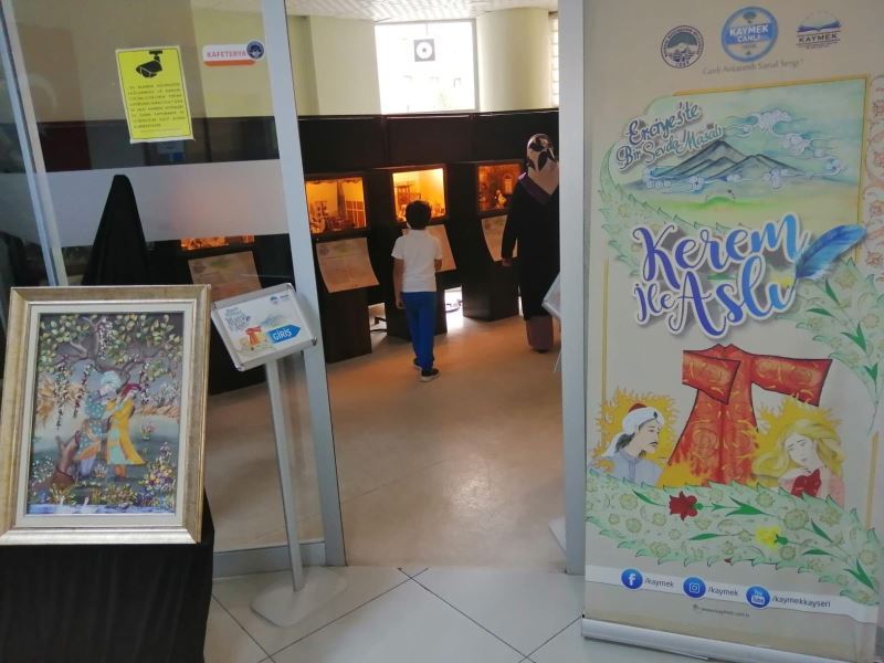 Kerem ile Aslı, 16. yüzyılda İran’da bir şahın oğlu olan Kerem ile şahın hazinedarı olan keşişin Aslı isimli kızı arasında yaşanan bir sevda öyküsü olarak biliniyor. Kerem ile Aslı Kayseri’de kavuşup, Kayseri’de yanarak kül oldukları ve iki aşığın küllerinin Erciyes’in Kayseri’ye bakan köşesine gömüldüğü rivayet ediliyor. Sergi, Kerem ile Aslı sevdasının İran’ın en önemli şehirleri olan İsfahan’dan Kayseri’ye uzanan hüzünlü yaşanmış gerçeğini aktarıyor. 3 ay gibi kısa bir zaman içerisinde hazırlanan, 18 farklı el sanatı ve 24 eserden oluşan sergide Kerem ile Aslı’nın bu masalımsı sevdasının hikâyesi 14 bölüme ayrılarak kronolojik, 3 boyutlu 14 eserle hazırlandı. Sergide Kerem ile Aslı sevdasının ayrıntılarını içeren 8 tablo ve 2 çini vazo yer alıyor. Sıfır atık projesine katkı sağlamak amacıyla yüzde 90 atık malzemelerden yapılan minyatürler, tablolar ve vazolar dikkat çekiyor.