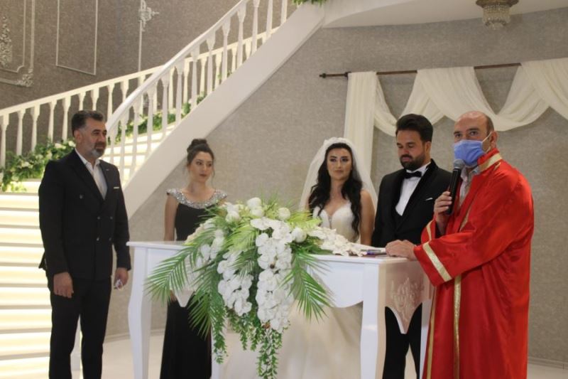 Arda ve Gizem Keskin çiftinin düğününe Sedat Kılınç İnşaat Yönetim Kurulu Başkanı Sedat Kılınç ve yakınları katıldı. Salon girişinde önlemlere uygun şekilde misafirlerin içeri alındığı düğünde, çiftin nikah şahitliğini Sedat Kılınç İnşaat Yönetim Kurulu Başkanı Sedat Kılınç yaptı. (İHA) -
