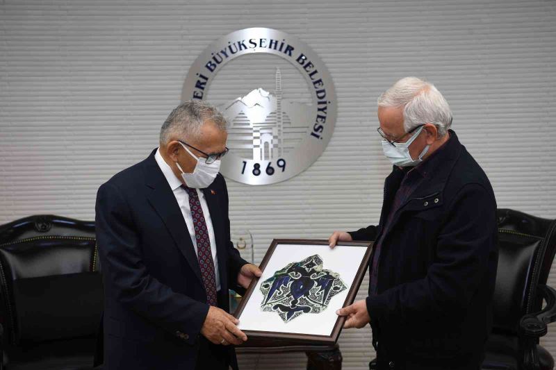 Kazı çalışmalarında Başkan Büyükkılıç’ın büyük destekleri olduğunun altını çizen Baş, “Bu çalışmalar çerçevesinde genel müdürlüğümüz dışında Kayseri’de yerelde de çok büyük destekler alıyoruz, bu desteklerin başında kazının başlangıcından itibaren Kayseri Büyükşehir Belediyesi’nin desteği çok fazla, her konuda. İyi bir kazı sezonu, kazı çalışması yürütüyoruz. Kazı çalışmalarının 12 aya çıkması bizleri memnun etti, o süre içerisinde biz düşündüğümüzden daha ileride kazı sezonunu sürdürüp, önemli şeylerle karşılaşacağımız düşünüyoruz, Kayseri ve Türk kültürüne önemli katkılar sağlayacağına inanıyoruz” ifadelerini kullandı. Ziyaret sonrası Prof. Dr. Ali Baş, Başkan Büyükkılıç’a günün anısına Keykubadiye Sarayı kazısında açığa çıkarılmış olan çift başlı kartal figürü ile süslenmiş sekiz köşeli yıldız çiniye ait fotoğrafın tablosunu hediye etti.