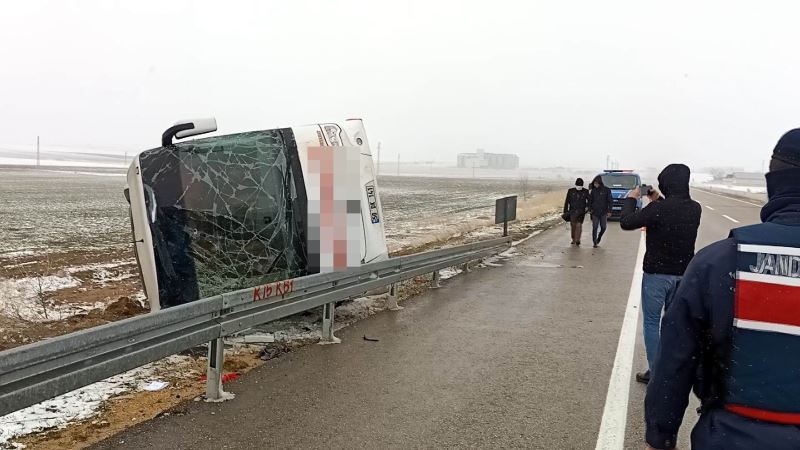 Kırşehir’de yolcu otobüsünün devrilmesi sonucunda ilk belirlemelere göre 14 kişi yaralandı.