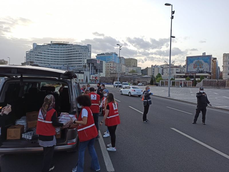 Türk Kızılay Kayseri Şube gönüllüleri, sokağa çıkma kısıtlaması nedeni ile şehrin farklı bölgelerinde uygulamada görev yapan polislere iftar vaktinde 450 adet yemek ikram etti.
