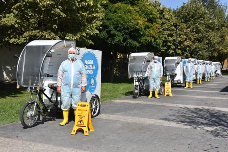 Kocasinan Belediyesi, daha temiz bir Kocasinan için doğa dostu sıfır karbon emisyonlu elektrikli mobil temizlik aracı ile özellikle lavabolarda dezenfekte ve hijyen temizliği gerçekleştiriyor.